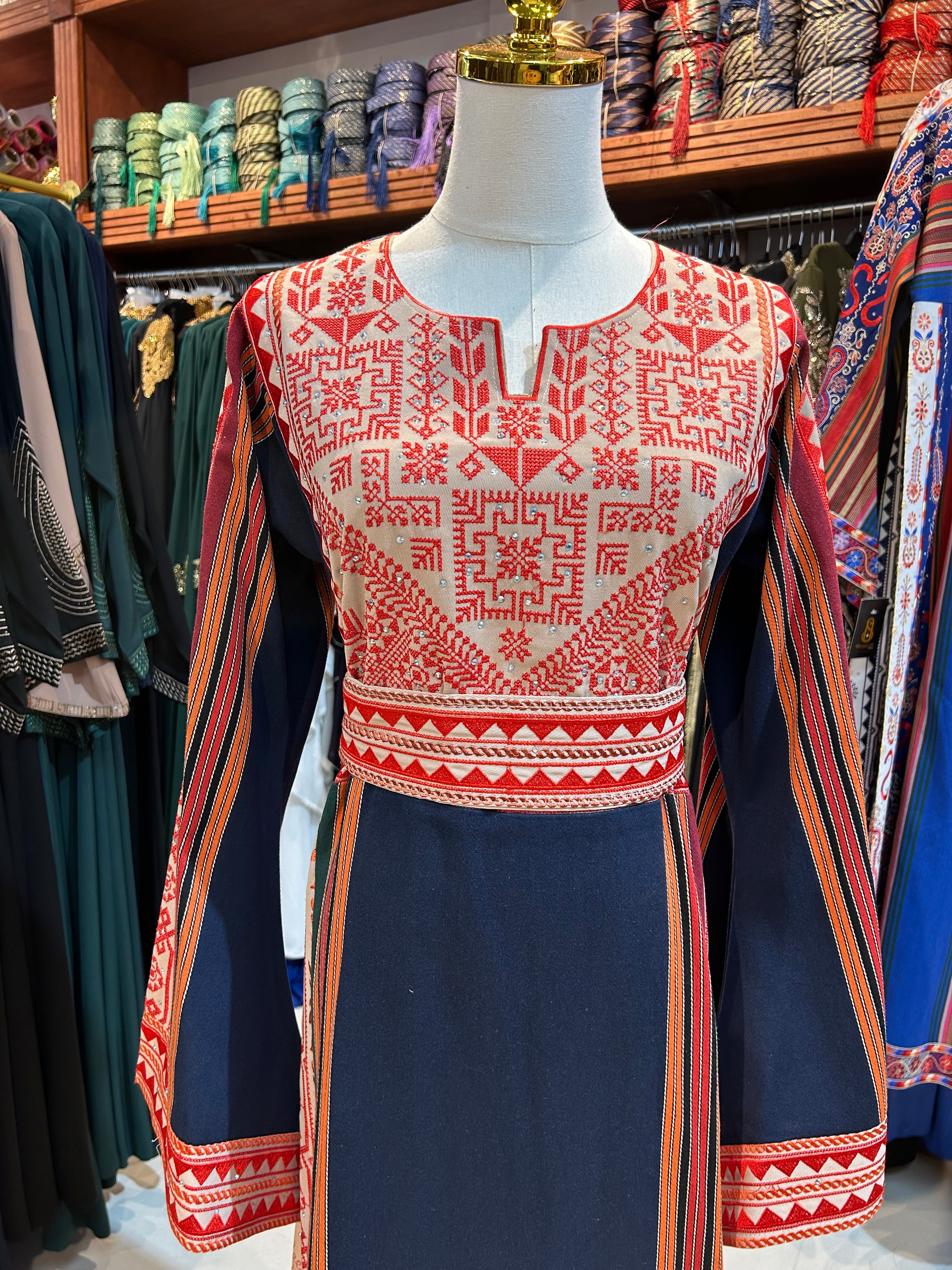 Elegant Dark Blue W/Red Thobe